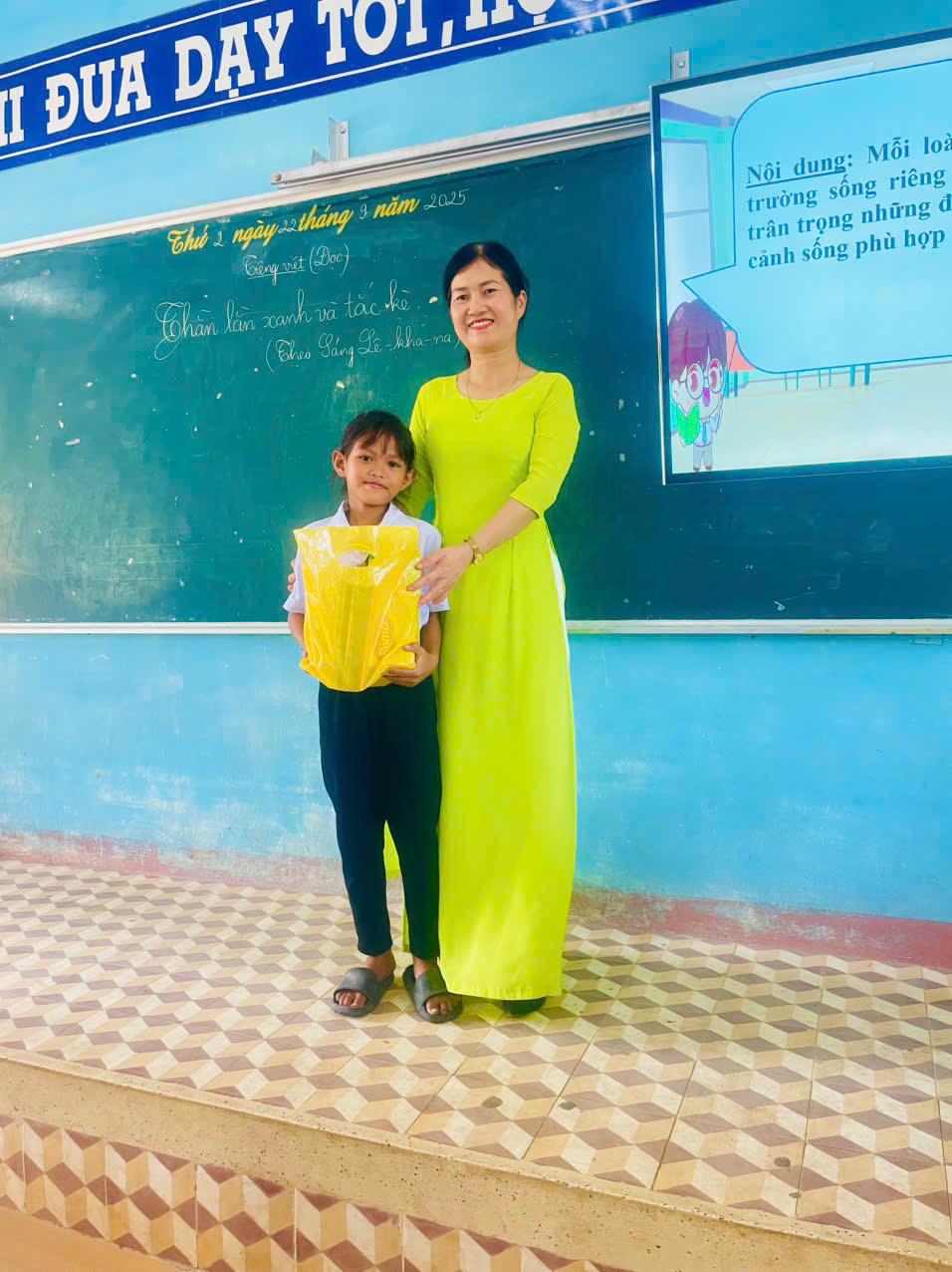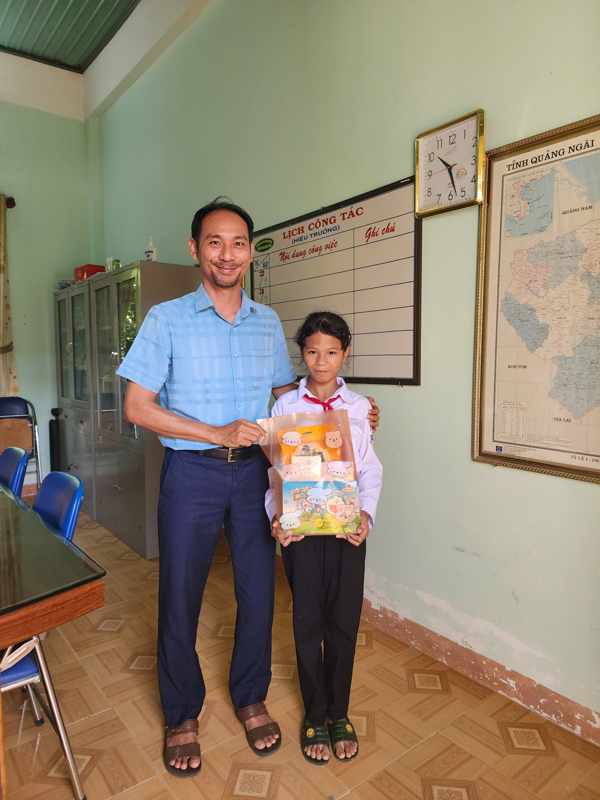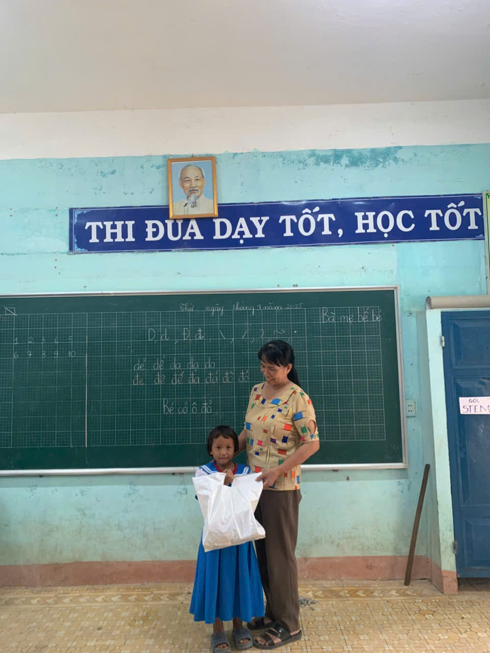 - Tặng dụng cụ học tập, quần áo, sách vở 📚
