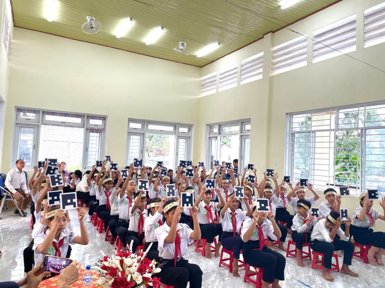 Cùng các thầy cô giáo và lực lượng cổ vũ đông đảo của các em học sinh.