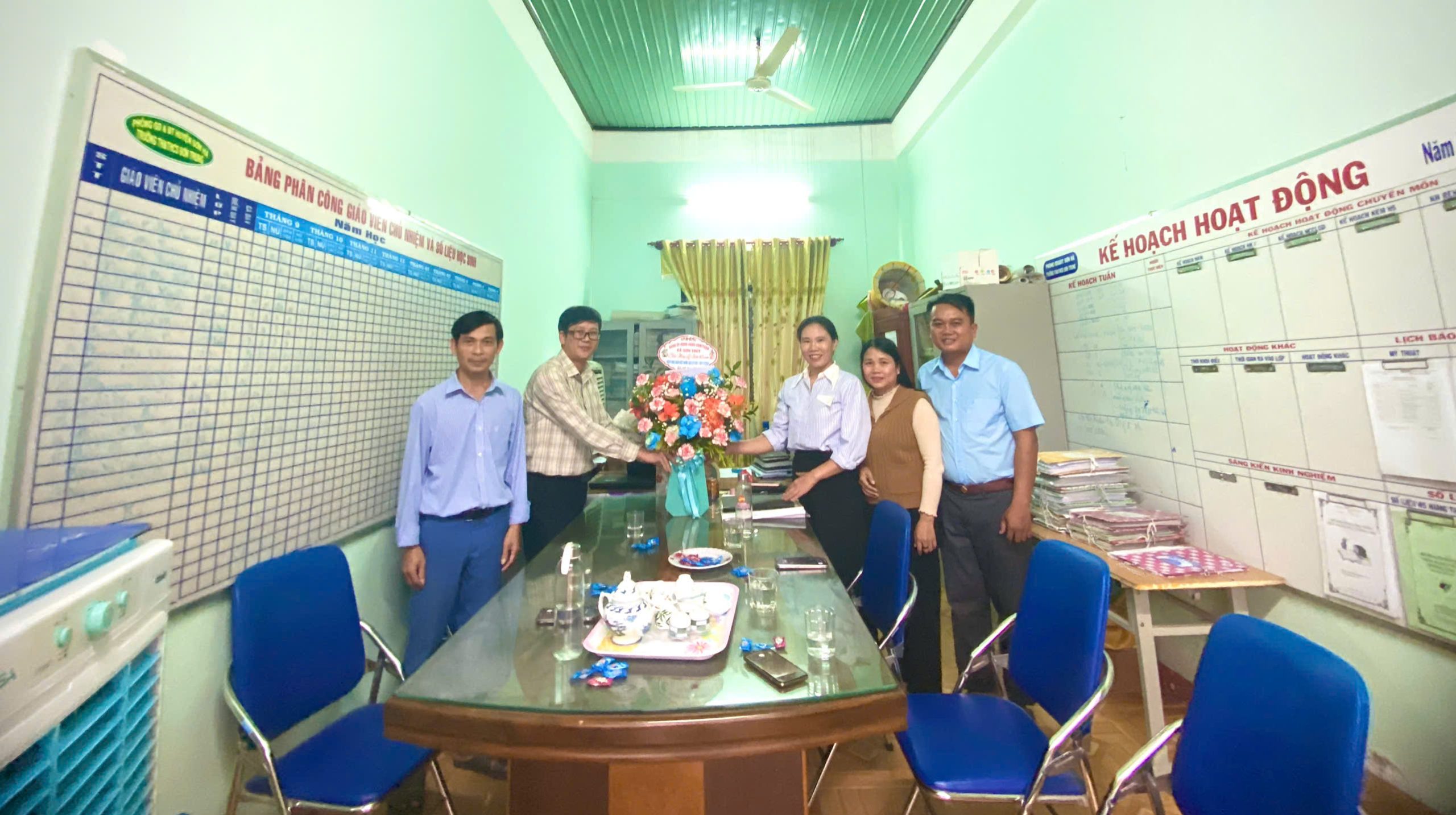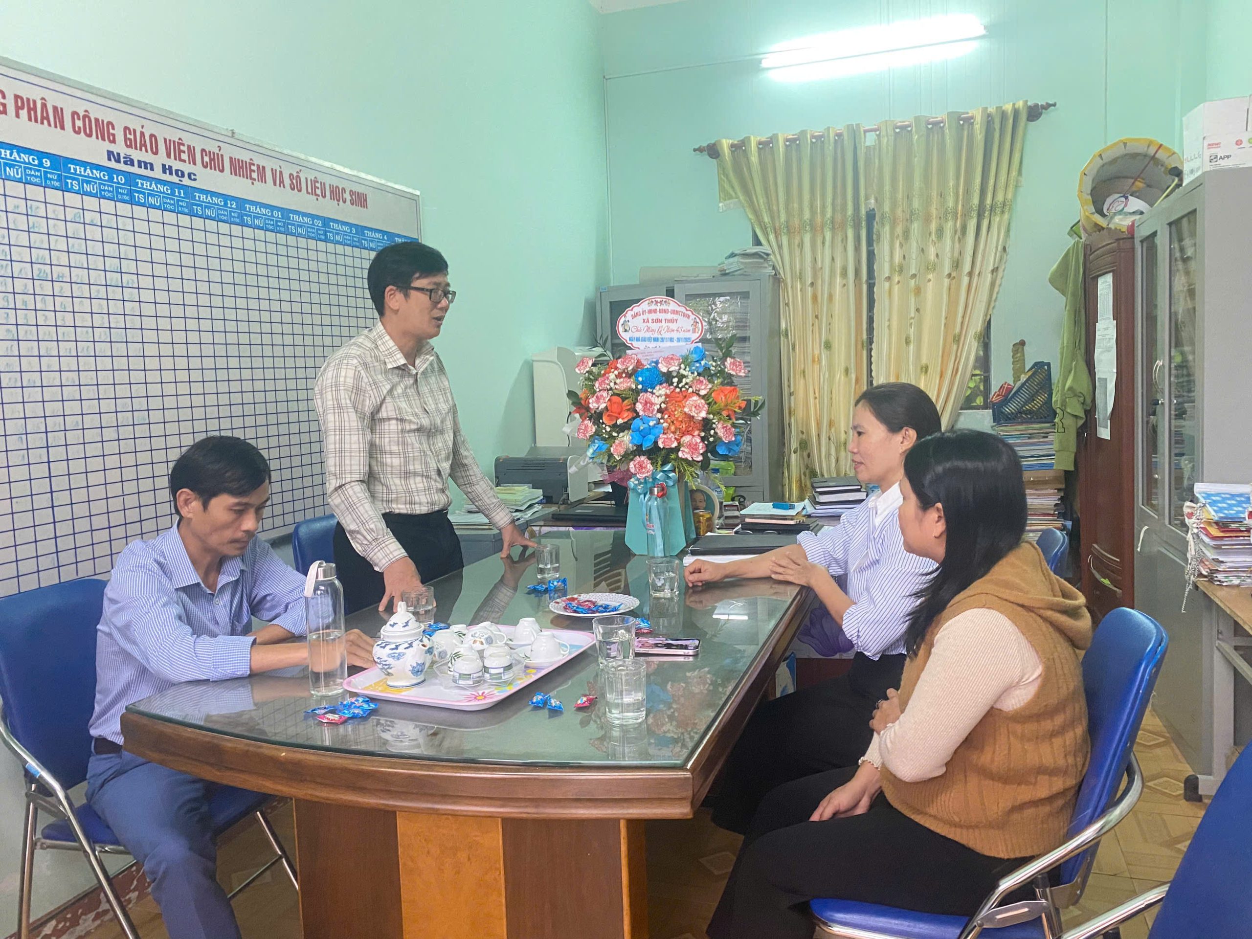 Thay mặt Hội đồng sư phạm nhà trường, chúng tôi xin gửi lời cảm ơn chân thành tới lãnh đạo xã Sơn Thủy đã dành thời gian quý báu đến thăm, chia sẻ niềm vui và gửi lời chúc mừng đến thầy cô. 🙏💖
