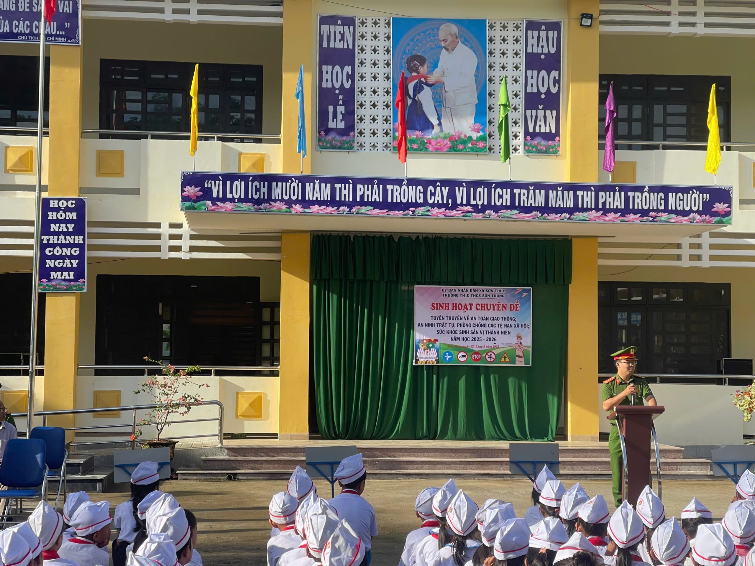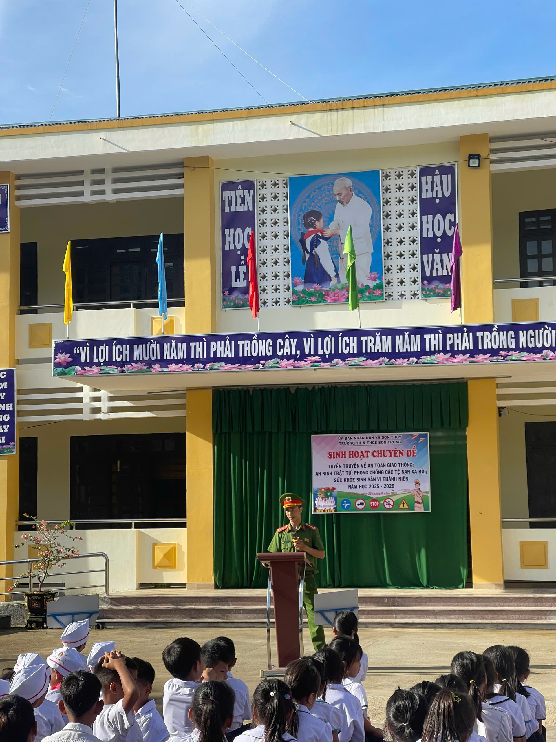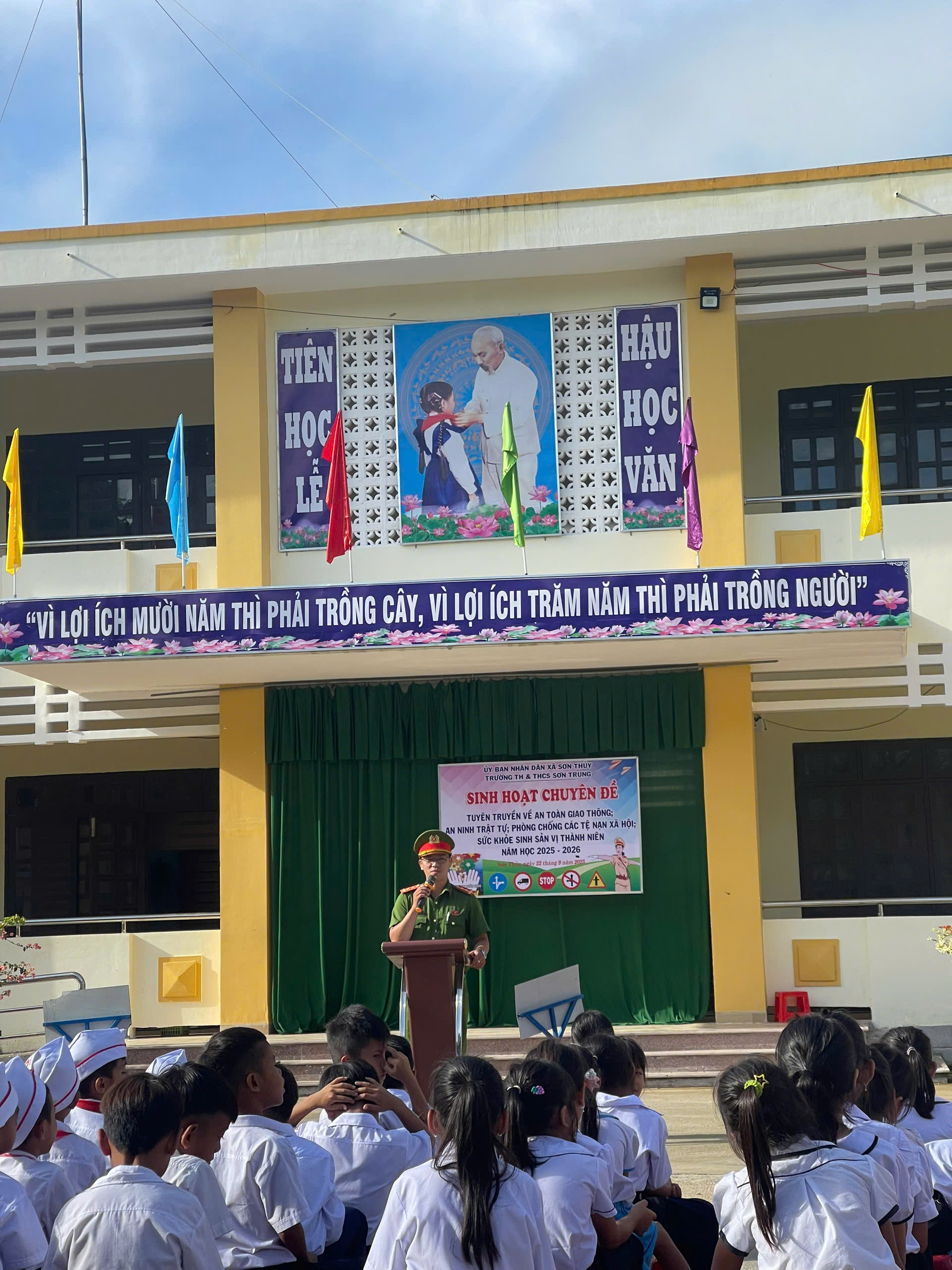 Trong bối cảnh xã hội ngày càng phát triển, việc trang bị cho thế hệ trẻ những kiến thức và kỹ năng cần thiết để trưởng thành toàn diện là vô cùng quan trọng. Nhận thức rõ điều đó, Liên đội trường TH&THCS Sơn Trung đã phối hợp cùng Công an xã Sơn Thủy tổ chức chuỗi hoạt động tuyên truyền ý nghĩa, nhằm nâng cao nhận thức và kỹ năng sống cho học sinh.